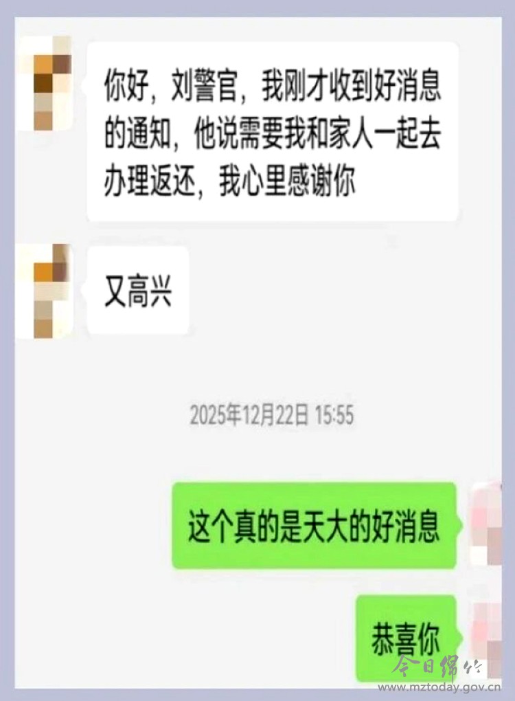 取得信任后,绵竹反诈中心立即联动武汉警方,引导黄某前往当地派出所报案。两地协作下,涉案账户被紧急止付。经过数月持续努力,黄某的部分资金已成功追回,剩余款项的追缴工作仍在依法推进中。 民警提醒广大市民,如遇陌生账户突然转账并要求提现,很可能涉及“洗钱”陷阱,应第一时间报警。凡是以“报警会导致账户、积分被冻结”等借口阻止你报案的,均为诈骗话术。若发现身边有人可能遭受电信网络诈骗,请立即拨打全国反诈专线96110举报。 (图片由市公安局提供)
