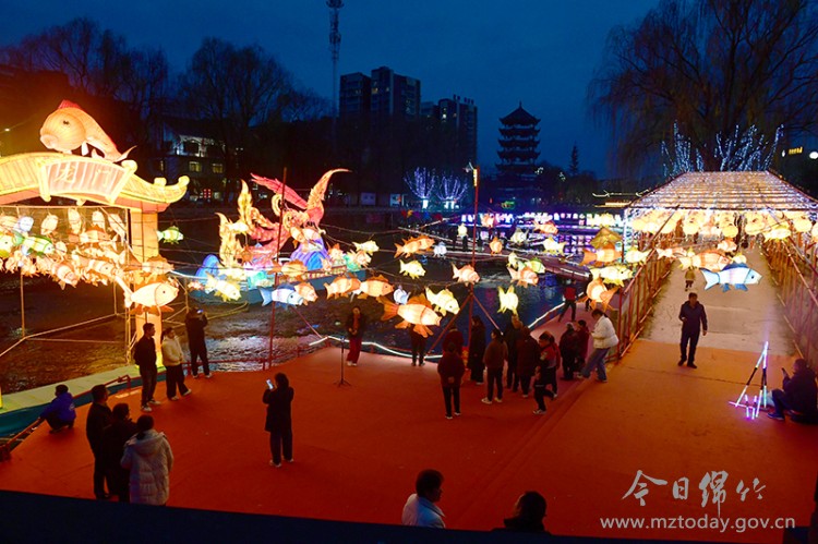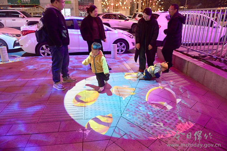 灯组布局上也独具匠心,13组大中型灯组及氛围亮化装置,巧妙串联起“河、桥、滨、城”全域空间,实现了城景与灯韵的无缝相融。市民漫步其间,步步皆赏灯,处处皆年味。此外,城区街道的夜景布置同样独具创新,获得了市民的纷纷点赞。