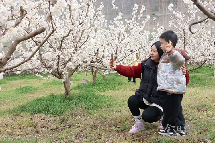 “我们专门从宜宾过来游玩,一来便被这片白茫茫的樱桃花惊艳了,花开得特别漂亮,空气也很清新宜人,春天的气息很浓郁。”游客严守强说,赏完花后他们在村里的民宿喝茶聊天,特别悠闲自在。