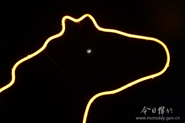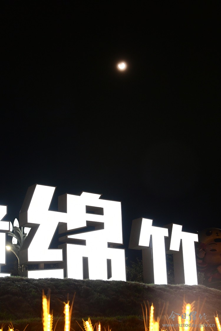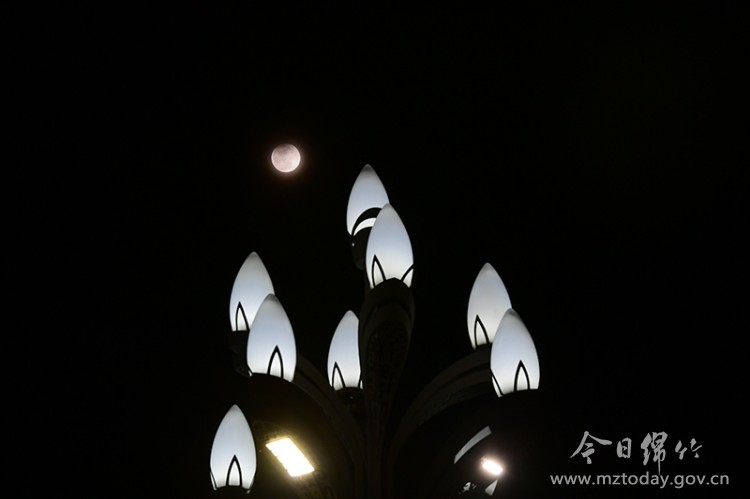▲3月3日晚上9点过,记者在绵竹市拍摄的月全食生光复圆过程中 当晚,一轮“红月亮”和圆月高悬夜空,夜色浓,灯火起,花好月圆,正是人间好时节。本次月全食最大的亮点是19时04分(食既)至20时03分(生光)为全食阶段,刚好在夜间黄金时段。