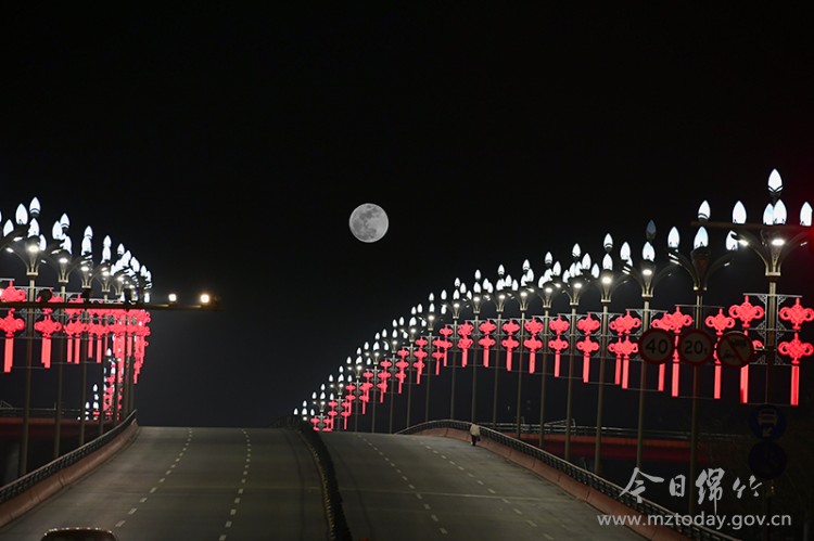 绵竹:“红月亮”和圆月为元宵佳节增添浪漫