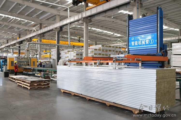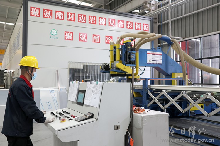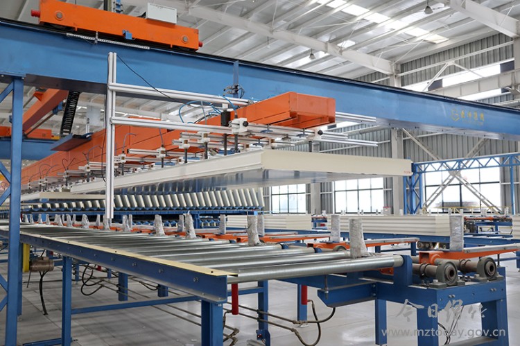 3月4日,四川医净科技的现代化生产车间内一场精密与速度共舞的“工业交响曲”正在上演。开卷机匀速转动,将成卷的钢板缓缓展开;覆膜设备精准贴合,为板材披上保护外衣;成型机模压咬合,钢板渐成规整形状。沿着长达百余米的连续生产线前行,发泡系统精准投料,双履带热压机均匀施压,板材在恒温环境中固化成型。自动切割机根据设定尺寸精准裁切,切割精度控制在毫米级;平移冷却系统平稳输送,将成品板材打包后由工人驾驶叉车进行整齐堆叠。从开卷到打包,十余道工序环环相扣,整个生产过程如行云流水。 “我们的智能化聚氨酯连续生产线引进行业顶尖技术,集成机械、化工、电控、液压等多领域科技成果,生产数据实现全流程采集监控。”据公司总经理吴文杰介绍,智能化设备不仅提升了生产效率,更确保了产品质量的稳定性。