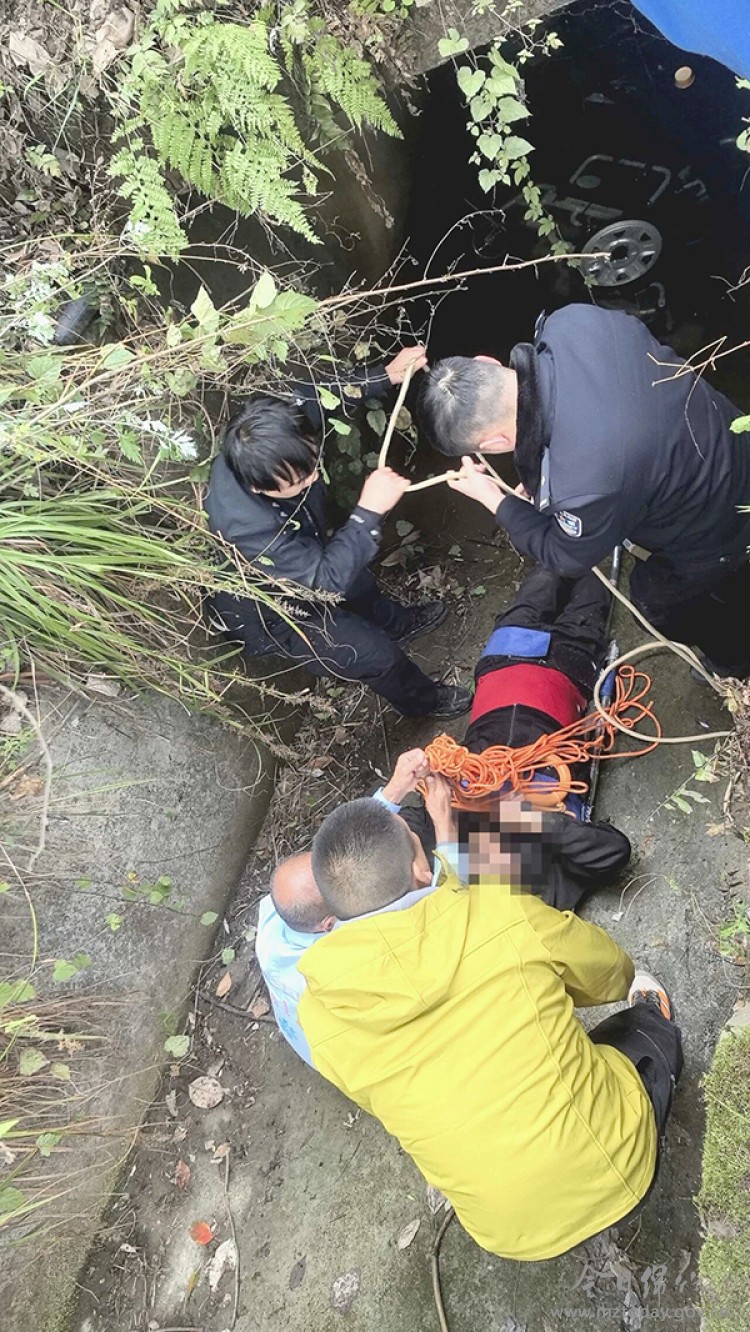 惊险!七旬老人坠渠 警医携手紧急施救