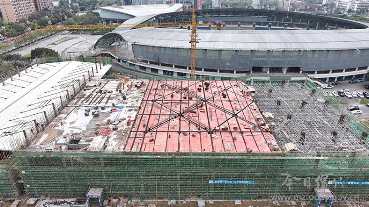 “新建综合训练馆正处于主体结构施工阶段,已完成屋面以下的大部分结构,正在进行屋面二段钢筋绑扎和三段模板支设,预计本月底实现主体结构封顶。随后立即开始幕墙施工、室内装饰装修及配套设施安装工作。”项目施工方执行经理陈仲兵表示,自项目启动以来,他们持续优化施工流程,加大人力和机械设备投入,在保障安全和质量的前提下,全力推动项目建设进度。预计今年9月底实现新建综合训练馆单体竣工验收。 记者了解到,新建综合训练馆是我市全民健身基础设施改造建设项目的内容之一,位于市体育中心,建筑面积为6659.10平方米。该场馆功能齐全、设施完善,规划建设12块羽毛球场地、2块室内网球场地,6块室内乒乓球场地。同时,在屋面还特别设置了4块露天网球场地,能够全方位满足市民不同类型的运动需求。