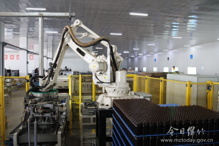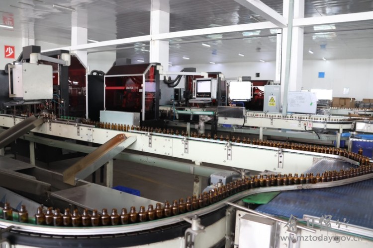 走进该公司生产车间,一条条现代化的玻璃瓶生产线引人注目,制瓶、检验、包装等环节均实现了主要工序机械化、自动化。经过仪器精密检验后,一个个棕色药用玻璃瓶从流水线上鱼贯而出,被智能码垛机器人快速打包、套袋、装箱,生产效率大幅提高。