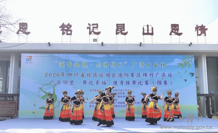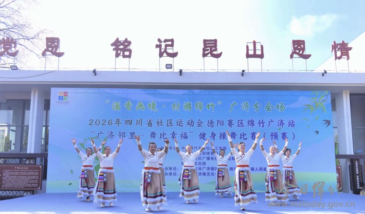 3月24日上午,“酒香画境·村游绵竹”广济分会场——2026年四川省社区运动会德阳赛区绵竹广济站“广济邻里·舞比幸福”健身操舞比赛(预赛)在广济镇文化中心广场举行。