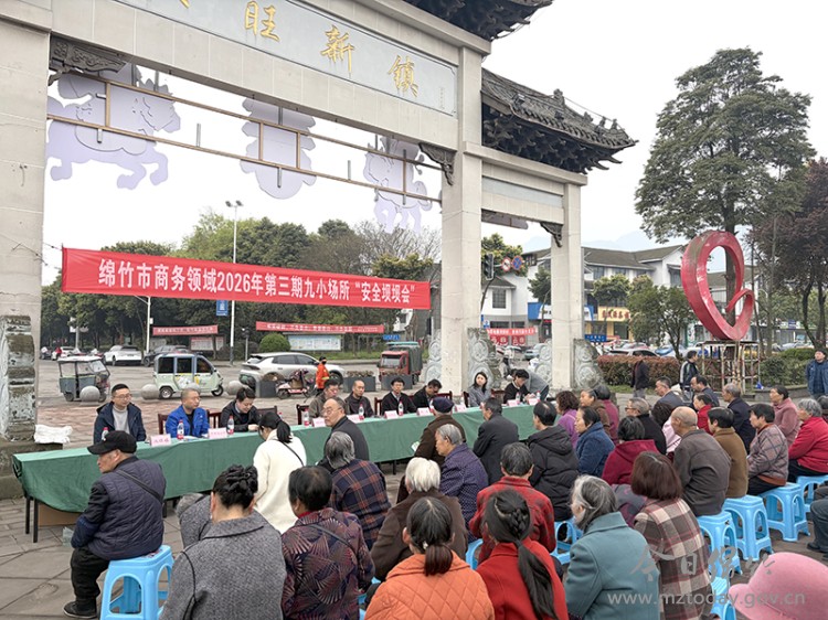 3月25日上午,我市商务领域2026年第三期九小场所“安全坝坝会”在汉旺镇新镇广场召开。