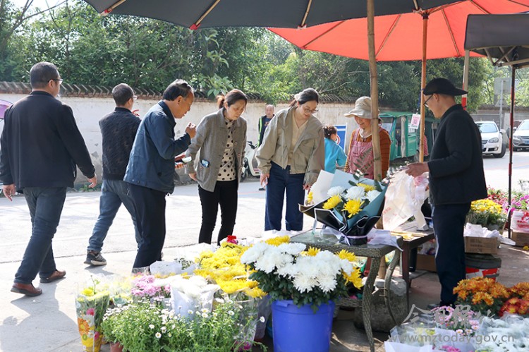 公墓旁的商户王申全正忙着向市民推荐、打包鲜花。作为当地村民,他从二十世纪九十年代初就在公墓旁销售祭祀用品,见证了祭扫方式的变迁。“以前全卖香蜡纸钱,从2018年开始,绿色祭祀逐步推广,我们就全部改卖鲜花,既符合政策,又保护环境。”王申全说。