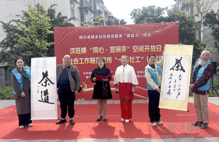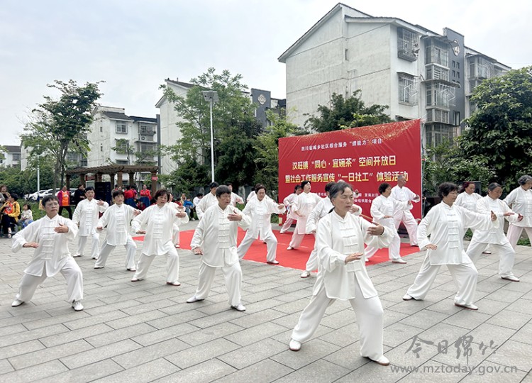 喜庆的腰鼓表演《开门红》率先点燃现场氛围。随后,市委社工部、汉旺镇、宜苑社区相关负责人,以及社区社会组织工作人员、居民代表参观了“同心·宜碗茶”空间运营情况,标志着这个集邻里交流、休闲互动、便民服务于一体的社区新阵地正式投入使用。 揭牌仪式后,精彩的文艺汇演轮番登场。《天池故乡美》《一壶老酒》等歌曲演唱情真意切,《二十四式太极》表演舒展大气,展现了社区居民积极向上的精神风貌。表演间隙穿插的有奖问答环节趣味十足,居民们踊跃参与,答对即可领取“同心·宜碗茶”体验券,在轻松互动中加深了对社区服务与社工工作的了解。另外,现场还设置了暖心便民服务专区,绵竹市第二人民医院的医护人员坐诊开展免费义诊,为居民提供测量血压等服务,并耐心解答大家提出的健康咨询。社工志愿者则通过案例讲解等方式,向居民普及反诈知识。 记者看到,揭牌后的“同心·宜碗茶”空间内座无虚席,居民们围坐在一起喝茶聊天、对弈切磋,温馨的氛围里满是烟火暖意。据了解,“同心·宜碗茶”空间是汉旺镇推进城乡社区综合服务“提能力”项目的重要载体,旨在打造居民家门口的“会客厅”,为群众提供休闲交流、邻里互动、议事协商的平台。下一步,汉旺镇将依托“同心·宜碗茶”空间,常态化开展形式多样的便民服务与文化活动,不断丰富社区服务供给,打通服务居民的“最后一公里”,携手共建共享和美社区。