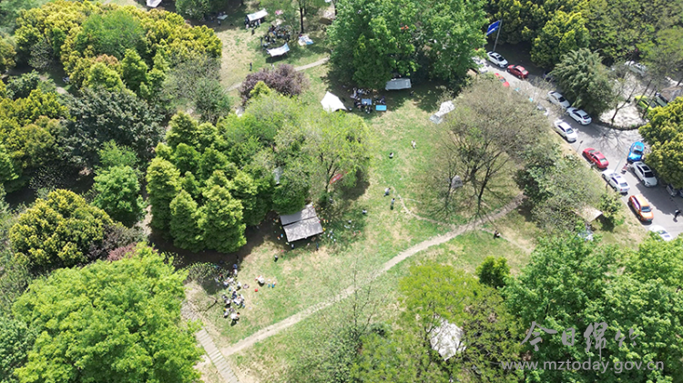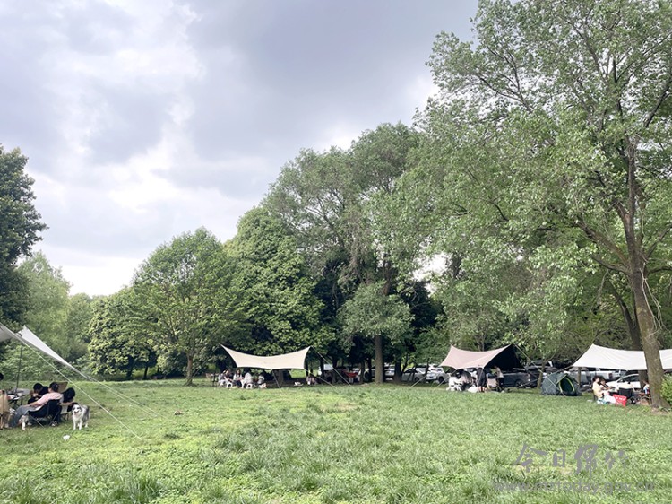 4月19日,恰逢周末,阳光和煦。汉旺湿地公园内,一顶顶帐篷如星子散落,与碧水、草坪交织成一幅春日闲趣图。市民和游客三五成群,围坐其间,或围炉煮茶,或静坐沐风,任由春色将自己轻轻包裹。