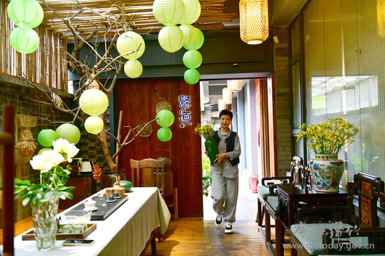 “青禾小院”不仅为游客提供了放松身心的空间,还吸纳了附近多名群众就业,并与附近农户达成了为小院提供停车场地、停车费用由小院承担的协议。附近一对老两口,每月仅凭停车费就能增收1000多元。 “这里空气好、环境舒适,今天特意约了好友来喝茶聊天,整个人特别放松。”游客宋女士笑着对记者说,易艳不仅要为客人泡茶,还要为他们拍照、修图,忙得不亦乐乎。 定制菜与茶美学:融合文化的特色餐饮空间 在紫岩街道谷王社区,与青禾小院同期营业的还有 “归道茶舍”。主理人庞婷婷喜爱茶文化,专门学习茶艺,学成后与两位朋友共同创办了该茶舍。经过市场洗礼,茶舍已由最初的以茶为主,转向以餐为主、以茶为辅,并推出厨师上门服务。