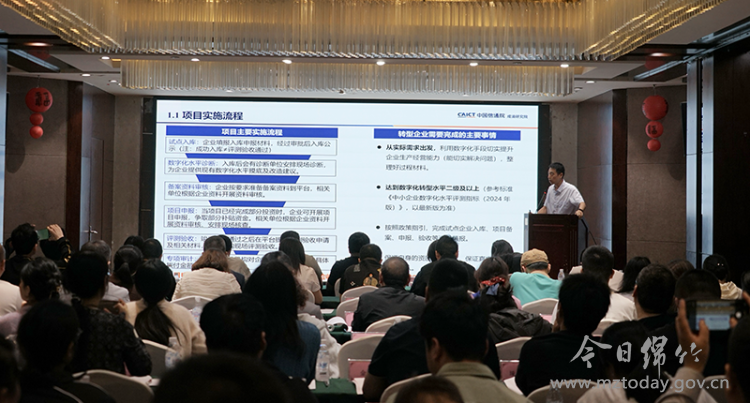 会上,德阳市经信局工业和信息化科科长罗兴武为参会人员深度解读了《德阳市支持中小企业数字化转型城市试点若干政策措施》,帮助大家清晰掌握试点政策的核心条款、支持方向与申报要点,切实用好政策红利。中国信通院成渝研究院数字化转型高级研究员裴宇峰讲解了项目实施流程,并现场进行演示,让与会人员明确了项目全流程推进步骤与平台使用规范,为后续高效开展项目入库、注册、备案等工作奠定了基础。