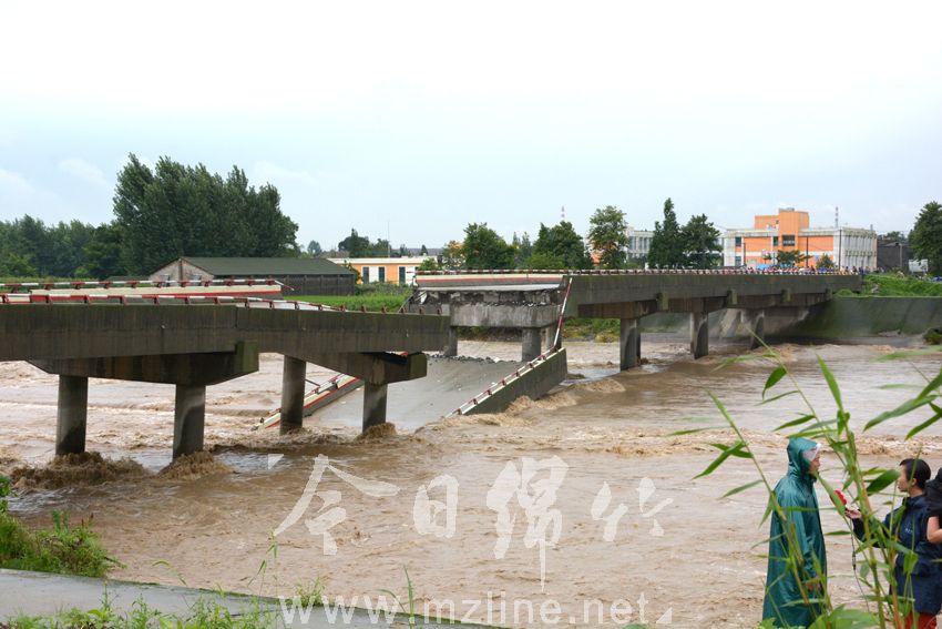当日早上8点30分,在当地实行警戒1个半小时后洪水冲断该桥。该桥是我市新市镇通往德阳市的重要通道。