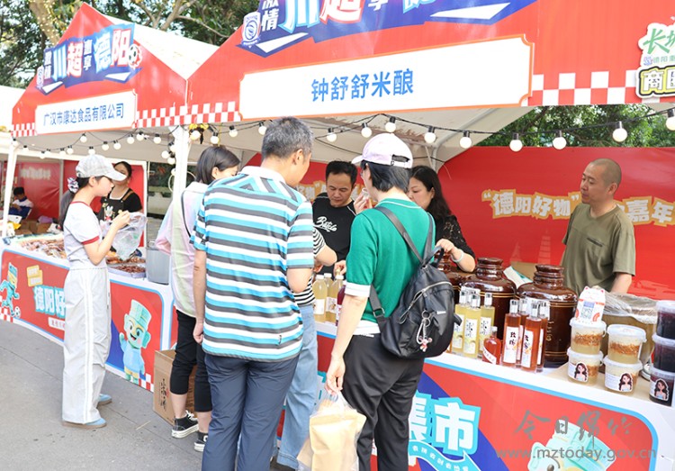 当天,场外的“德阳好物”集市同样热闹非凡,绵竹土特产展位前围满了球迷与市民,剑南春、东圣酒、赵坡茶、钟舒舒米酿等特色产品琳琅满目,不少球迷趁着球赛间隙,一边品味绵竹味道,一边为主队加油助威。