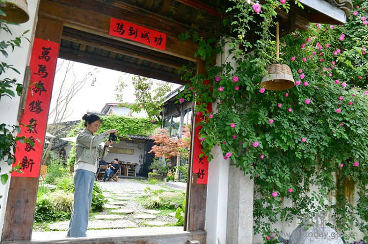 而在孝德镇光明村青禾小院茶房,庭院里的蔷薇与古朴茶室相得益彰,客人们一边品茗一边赏花,别有一番闲适意趣。