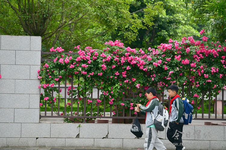 聚康嘉和·颐养社区内,蔷薇花墙与居民楼相映成趣,成为小区最受欢迎的休闲景观。老人们坐在花架下聊天,孩子们在花丛旁嬉戏,一派和谐温馨的景象。 川师绵竹附小围墙外同样花团锦簇,家长们接送孩子时总忍不住多看几眼,还有不少摄影爱好者专程赶来取景。