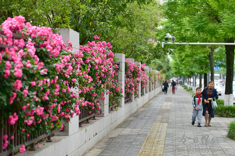 “蔷薇繁艳满城香,春日风光入画来。”暮春时节,我市街头巷尾的蔷薇花竞相绽放,为城市增添了一抹浪漫色彩。 在民办四川天一学院围墙外,绵延数百米的蔷薇花正值盛花期,粉白相间的花朵密密匝匝垂挂枝头,微风拂过,花瓣轻舞,清香袭人。不少师生和过往市民纷纷驻足,举起手机定格这春日限定美景。