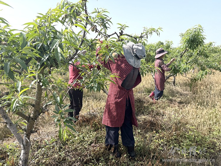 在香韵香山蟠桃园内,枝叶繁茂的桃树上挂满了青涩幼果,长势喜人。管护人员按照“去弱留强、去密留稀”原则,精准摘除病虫果、畸形果、弱小果及过密果,保留果形端正、长势健壮的优质幼果,合理控制留果量与果实间距,确保养分集中供给。“疏果是提质增效的关键一步,既能避免果树负载过重,又能让留存的果实个头均匀、口感更佳,还能有效缓解‘大小年’结果现象,延长桃树经济寿命。”管护人员说。在疏果基础上,果园同步推进全流程田间管理体系建设,及时为果树补充养分,开展科学施肥;全面清理果园杂草、枯枝落叶,铲除病虫害滋生源头。
