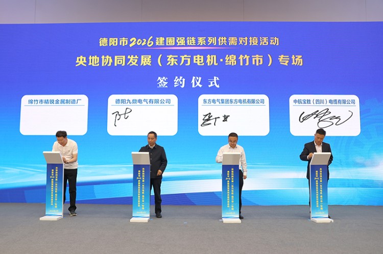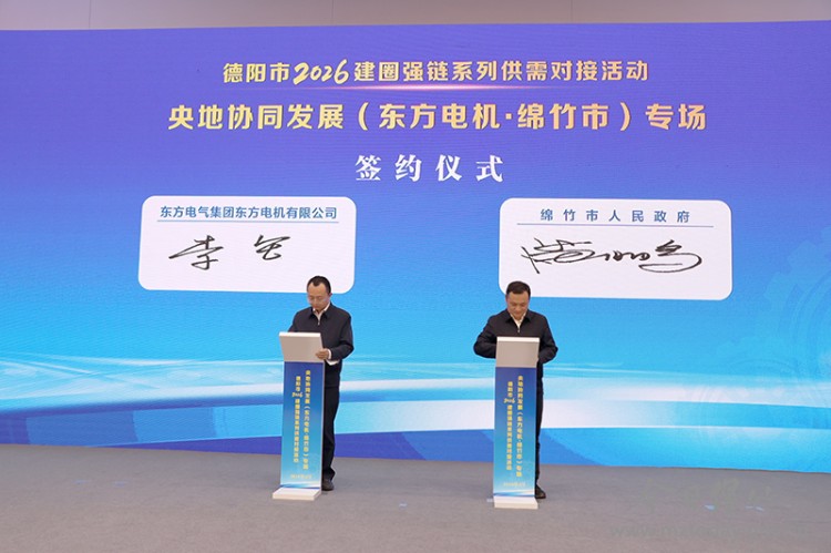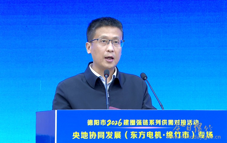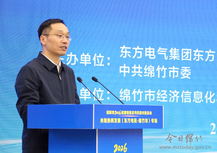 张天鹏在致辞中表示,东方电机自1958年扎根德阳以来,与德阳共生共荣,通过央地合作共同擦亮“重装之都”名片。“十四五”以来,公司形成“2+8+N”产业协同发展新格局,其节能环保、高端电动机等产业发展成果显著。2026年作为“十五五”规划开局之年,东方电机将聚焦“建设世界一流企业”目标,扛起产业链链主责任,引领行业技术和管理创新,共促产业升级。绵竹产业基础雄厚,与东方电机发展需求高度契合。就双方下一步合作,希望以供需对接推动产品应用“双向奔赴”,以协同发展带动本地企业提质扩能,以政企协同打造央地合作样板标杆,为区域高质量发展注入强劲动能。