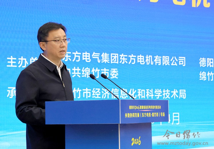 德阳市2026建圈强链系列供需对接活动央地协同发展(东方电机·绵竹市)专场在绵竹市举行 黄朝阳张天鹏陈阳波致辞