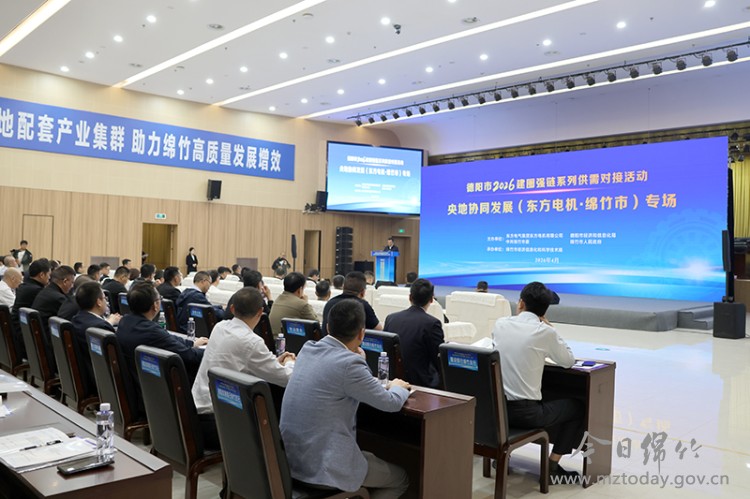 4月27日下午,德阳市2026建圈强链系列供需对接活动央地协同发展(东方电机·绵竹市)专场在绵竹市图书馆举行。这场由中共绵竹市委、绵竹市人民政府、德阳市经济和信息化局与东方电气集团东方电机有限公司共同搭台的“相亲会”,吸引了140余家机械加工、白酒、材料化工等领域重点企业和金融机构负责人踊跃参与。链主“出题”、政府“搭桥”、企业“答卷”,两个半小时的对接,签下的是订单,凝聚的是信心,折射出绵竹市持续优化营商环境、精准服务企业发展的坚定决心与务实行动。 链主“出题”政府“搭台”:从“企业找资源”到“资源找企业” 当天,德阳市委副书记、市长黄朝阳,德阳市副市长王洪,绵竹市委书记陈阳波,绵竹市委副书记、市长潘鹏等领导出席活动。东方电气集团东方电机有限公司党委副书记、总经理张天鹏携旗下分公司相关负责人,与绵竹企业家们面对面交流。这样的“阵容”,传递出一个鲜明信号:央地协同,不是口号,是行动;优化营商环境,不是空谈,是实招。 “东方电机作为全球清洁能源装备和服务的主要供应商,实力雄厚、技术领先,在成德高端能源装备集群中带动近800家链属企业协同转型发展。绵竹要深化与东方电机等链主企业的对接合作,建立常态长效机制,推动供需精准匹配、项目落地见效,助力更多企业融入产业链、提升市场竞争力。”黄朝阳在致辞中一语道破活动初衷,搭建链主企业与地方企业、产品供给与市场需求的精准对接桥梁,实现央地双向赋能、合作共赢。