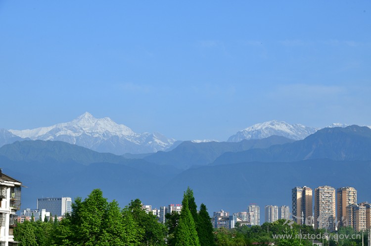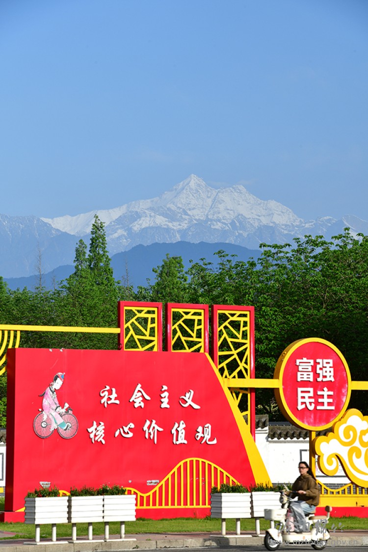 海拔4981.3米的狮子王峰作为龙门山脉的巅峰尤为抢眼,在晨光中熠熠生辉。山顶白雪皑皑,在朝阳映照下泛着金色光芒,山脉纹理清晰可见,仿佛近在咫尺。雪山与城市建筑、绿树繁花交相辉映,构成一幅动静相宜的美丽画卷。“今天能见度太好了,雪山仿佛就在眼前!”早起锻炼的市民纷纷驻足观赏,拍照记录。 气象部门解释,连日降雨洗净尘埃,为观赏创造了绝佳条件。